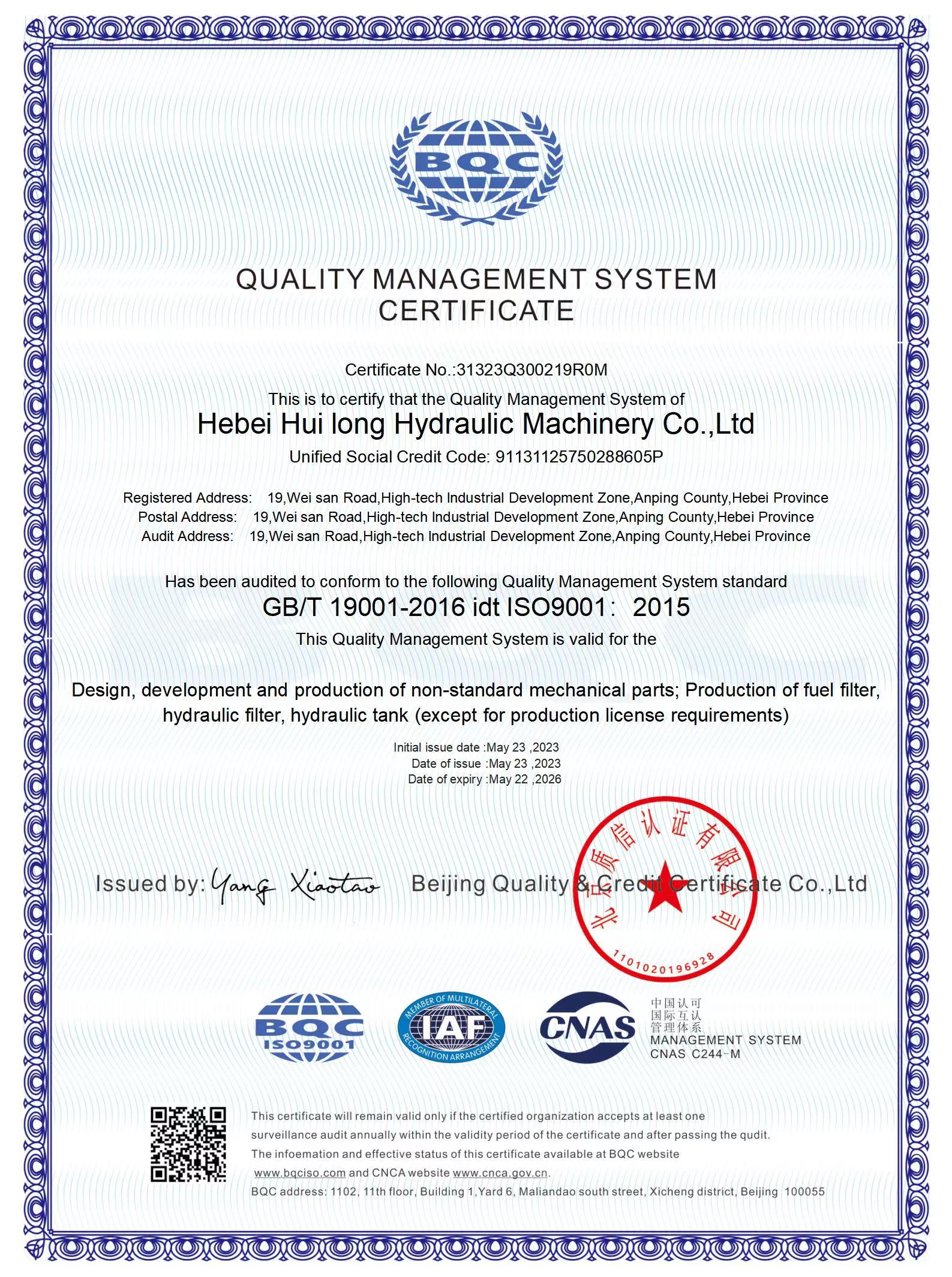 河北惠隆液壓機械有限公司主要生產回油過濾器,吸油過濾器,液壓過濾器,空氣過濾器等過濾產品我們一直致力于滿足市場的需求,為客戶的機械清潔運行提供優良的產品。本公司設備精良,工藝精湛,檢驗檢測設備完善。產品全面按照ISO9001:2015質量管理體系生產,對采料,生產, 銷售實施全程質量控制,使產品質量各項性能指標均優于國家標準企業每年均投入大量的資金,引進精湛的流水線和改進各種生產加工設備。